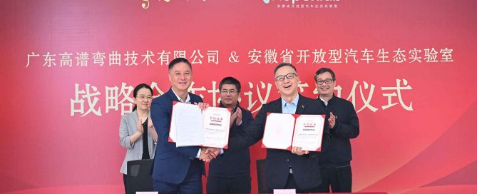 11月4日,广东高谱弯曲技术有限公司与安徽省开放型汽车生态实验室战略合作协议签订仪式圆满成功! 安徽省汽车办领导,率多个地市职能部门负责人共同见证这一重要时刻。 技术+平台,互补共赢 高谱弯曲深耕金属弯曲成型技术领域多年,凭借超前的弯曲解决方案、高效的设备研发能力,为汽车轻量化提供关键技术支撑。 安徽省开放型汽车生态实验室作为聚焦汽车产业生态构建的核心平台,整合产学研资源,在汽车技术研发、成果转化、标准制定等方面具备深厚积累。 [...]